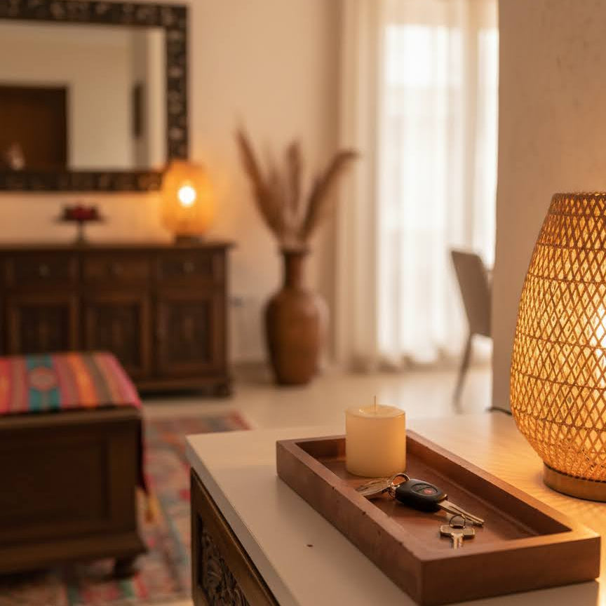 Uso: Base para velas, bandeja organizadora, decoración de mesas, repisas o escritorios.