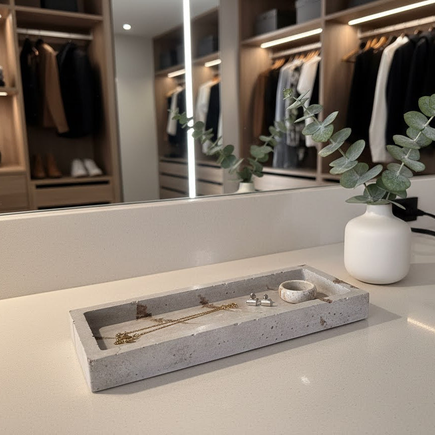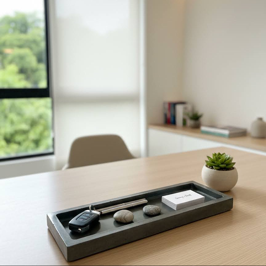 La Bandeja Minimal es la pieza perfecta para quienes buscan estilo y funcionalidad en un solo diseño. Hecha a mano con concreto, esta bandeja ofrece un acabado natural, elegante y resistente, convirtiéndose en el accesorio ideal para organizar velas, joyas, perfumes, accesorios o simplemente realzar cualquier espacio de tu hogar.