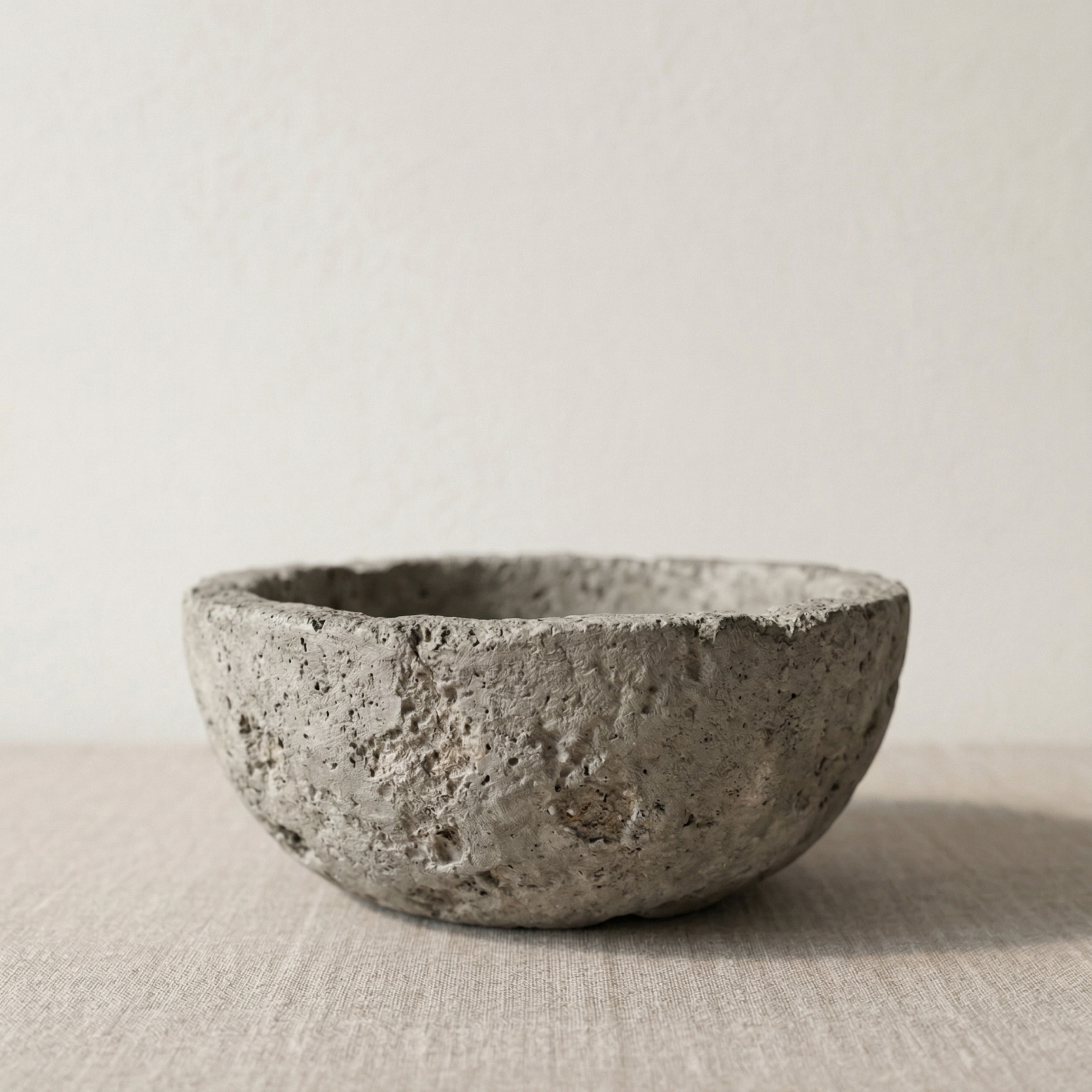 Su textura rústica y sus bordes irregulares celebran la imperfección artesanal, convirtiéndolo en un objeto de alto impacto visual, ideal para resaltar sobre mesas de madera, piedra o superficies minimalistas.